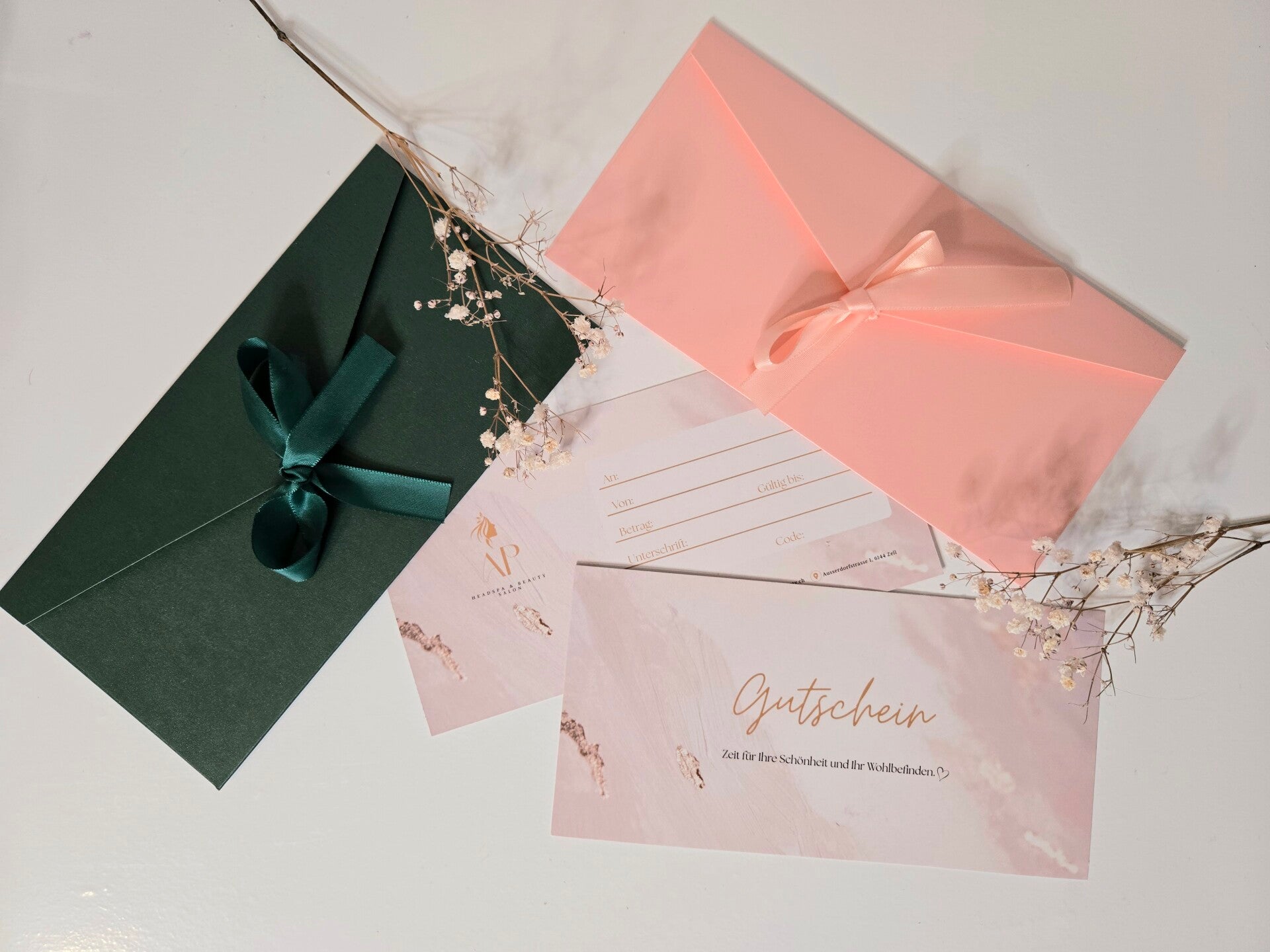 Meine Gutscheine sind wertbasiert, damit die Beschenkte ihre Behandlung frei wählen kann.